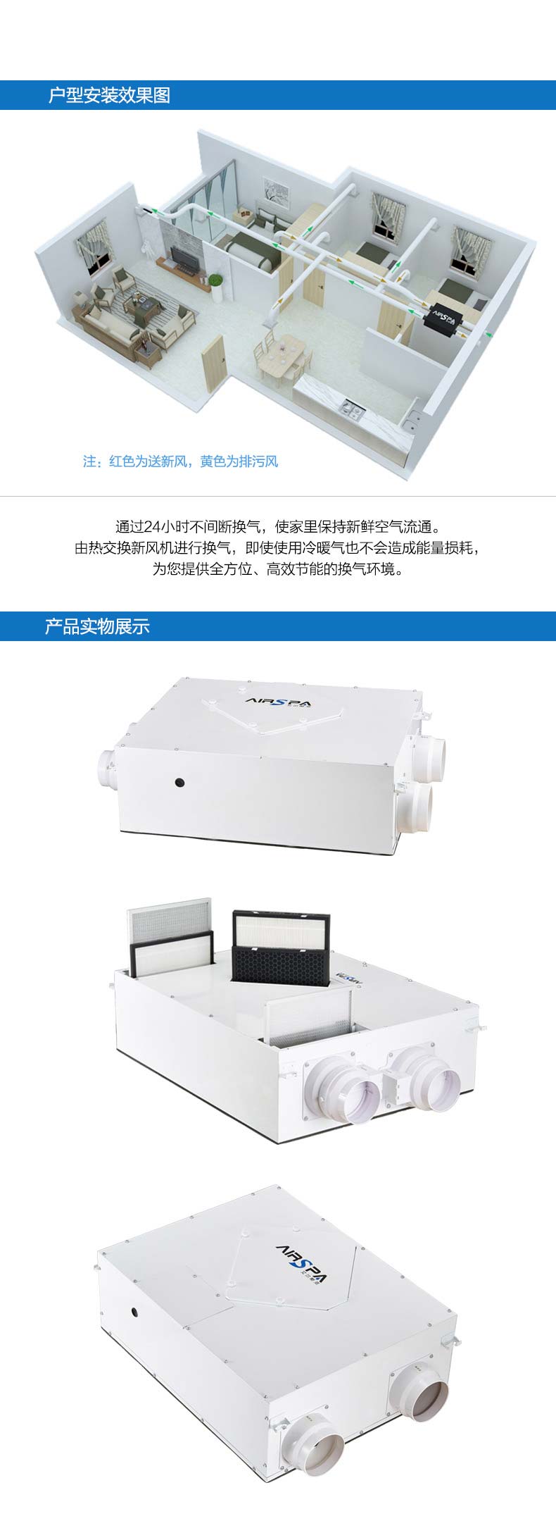 2.雙向換氣,換氣效果好,多檔風速可選,滿足差異化新風量需求;